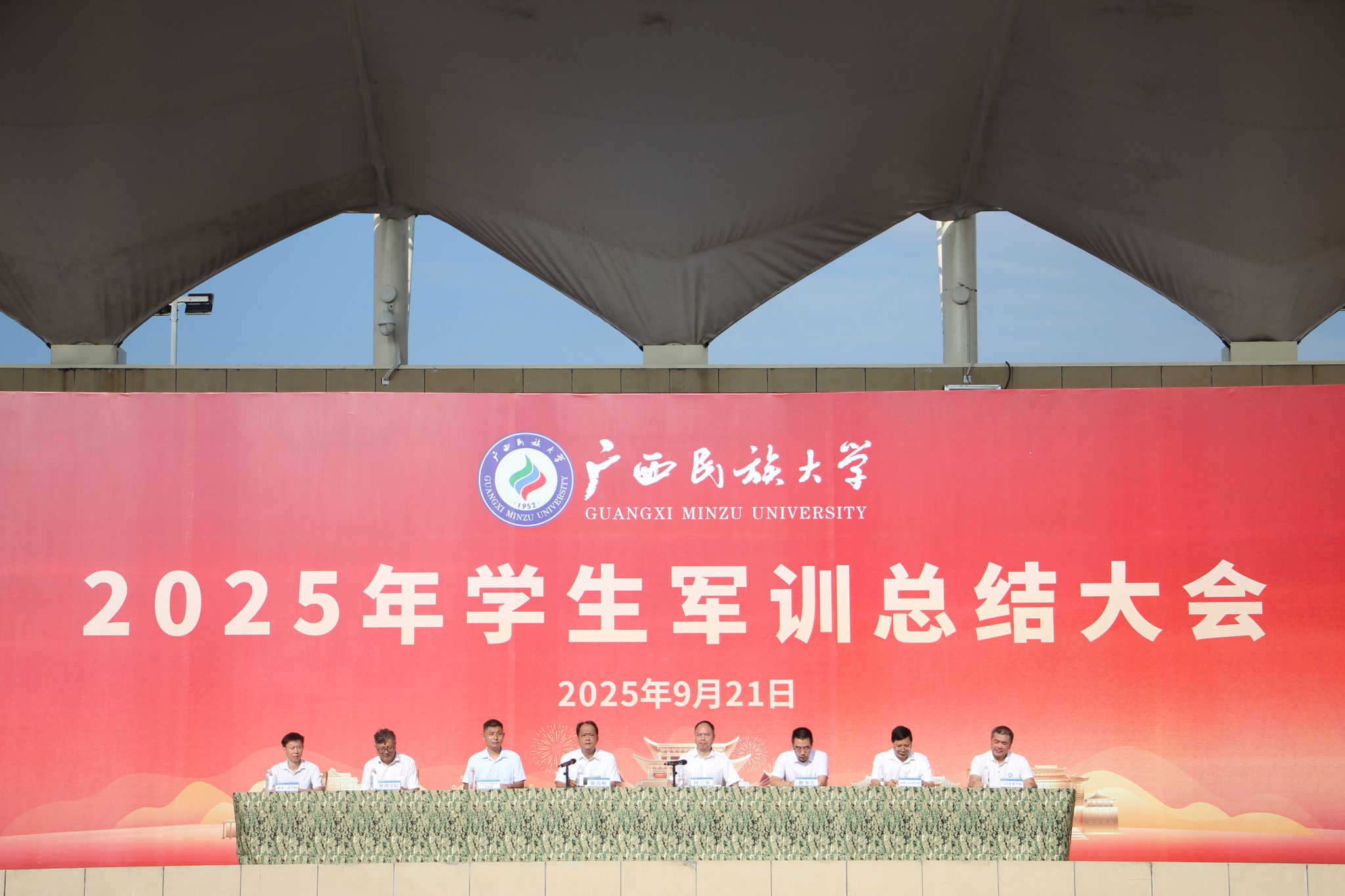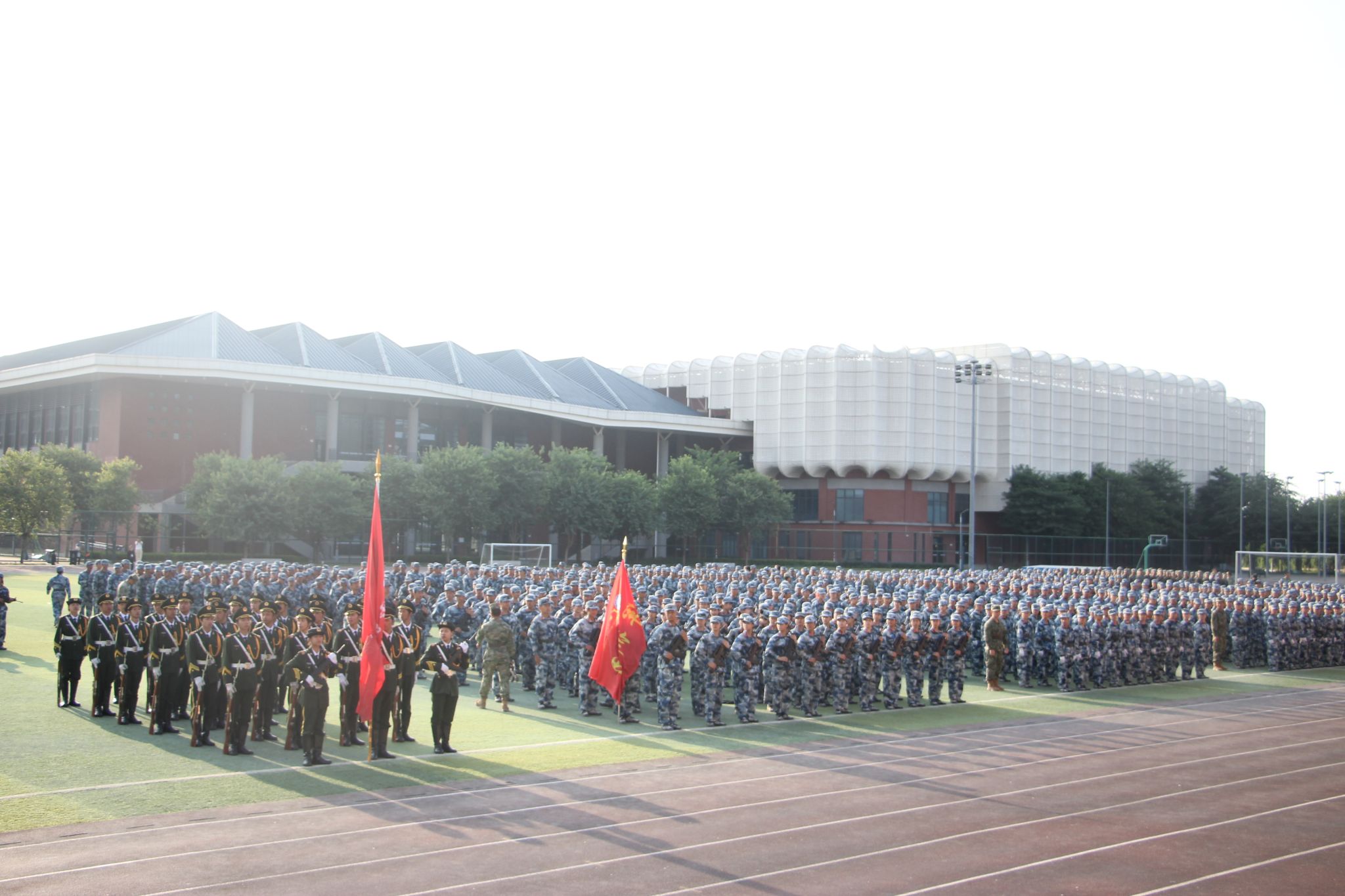 9月20日上午8时,2025级新生军训汇演在武鸣校区田径场顺利举行,fun88乐天使2025级新生以饱满的热情参加汇演。