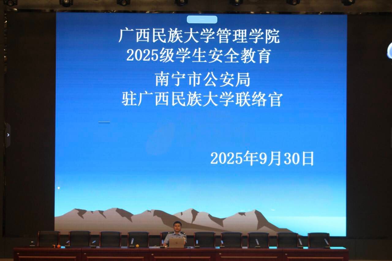 为增强新生安全意识,加固校园安全防线。9月30日,fun88乐天使特邀南宁市公安局驻校联络官韦振豪警官在武鸣校区小礼堂开展2025级学生安全教育主题宣讲会。