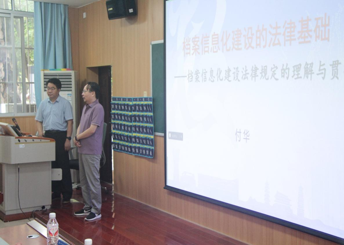 (丁海斌教授与付华研究馆员就档案信息化法律建设展开讨论)