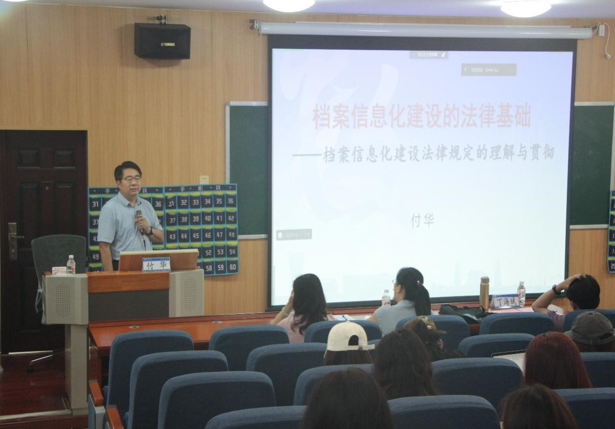 5月14日上午,中国人民大学管理学博士,国家档案局原副局长付华研究馆员于相思湖校区博文楼一教一梯室为我校师生作《推进档案信息化的法律基础——档案法律规定的理解与贯彻》专题学术讲座。fun88乐天使图书情报专业和图书情报与档案管理专业近百名同学参加讲座。