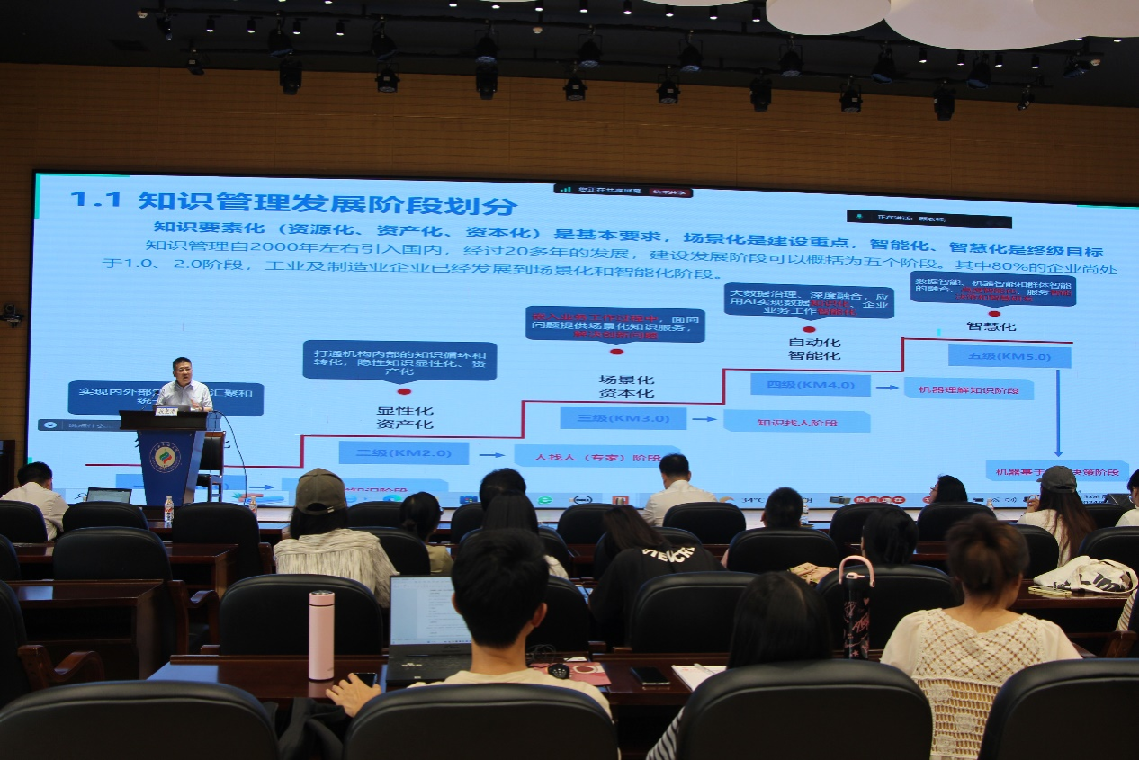 段尧清教授以数据要素化为切入点,深入探讨了知识管理从需求驱动向价值驱动的转型路径。他强调,在当前信息化高速发展的背景下,将数据要素化纳入知识管理体系是提升组织竞争力的关键。讲座过程中,段教授通过丰富的案例分析,阐述了数据要素化在优化知识管理、提升组织价值创造能力方面的实践应用,提出了统一部署、同步设计实施等关键步骤,强调了数据保密安全的重要性。